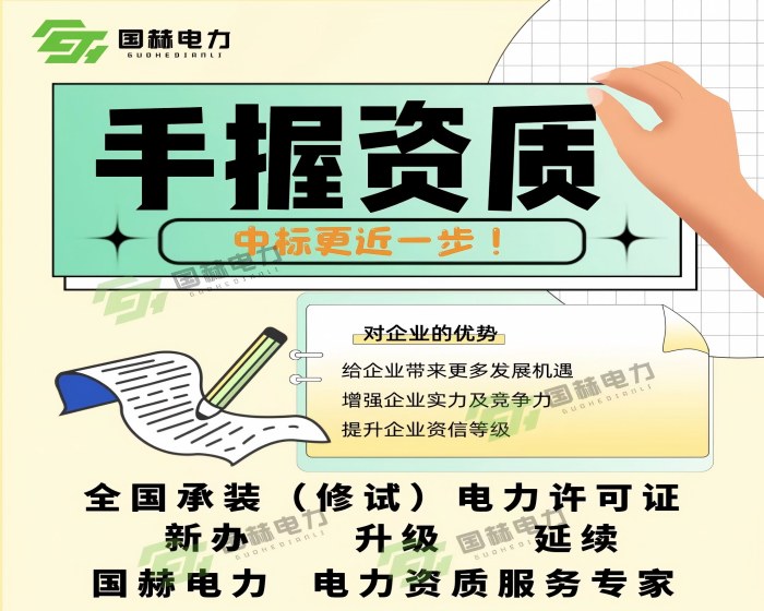 选择国赫电力,就是选择专业、高效、可靠的承装修试服务。相信在国赫电力的帮助下,企业能够快速、顺利地取得所需资质,拓展业务范围,实现更好的发展。让我们携手国赫电力,共创电力事业的美好未来。
